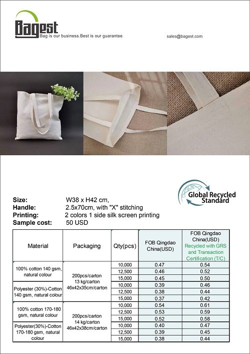 Cotton bags with GRS certification price list