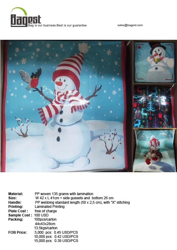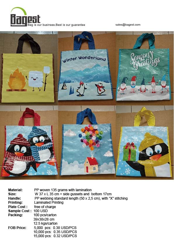 woven shopping bag for Christmas, available design. Plate cost free of charge !